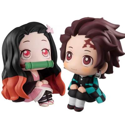 Cute Q Version Sitting Tanjiro And Nezuko Anime Figures For Car Cake Decoration Pvc Material