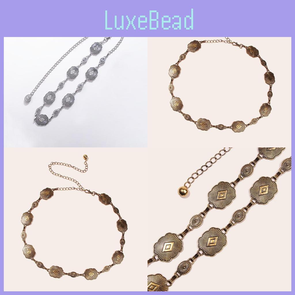 This vintage-inspired metal waist chain features a 115cm length with a 2-4cm width, crafted from durable alloy material. The jewelry showcases intricate line and geometric designs with electroplated finishes in silver or antique copper tones. Ideal for casual or artistic outfits, it enhances bohemian or vintage styles. Care involves wiping with a soft cloth to maintain its finish.