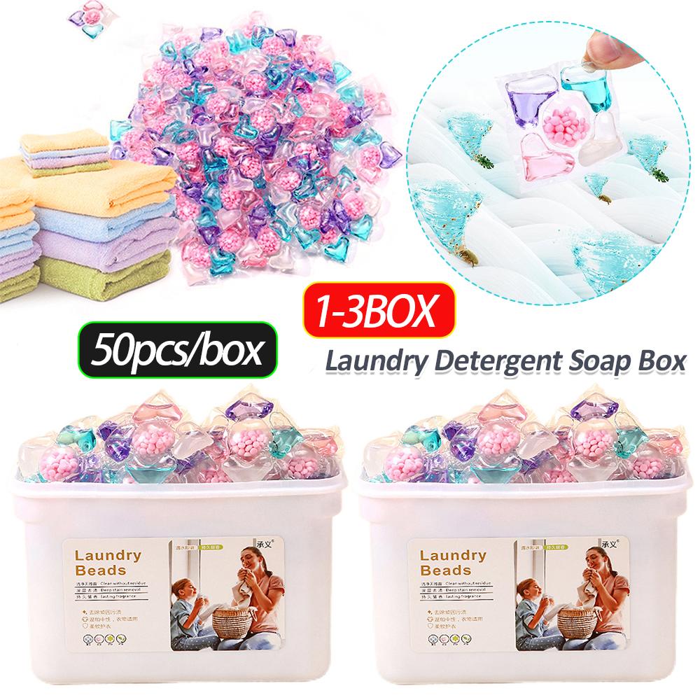 50pcs/box Laundry Detergent Soap Box 5 in 1 Detergent Liquid Laundry Beads Laundry Aroma Liquid Capsule Ball for Home Dormitory