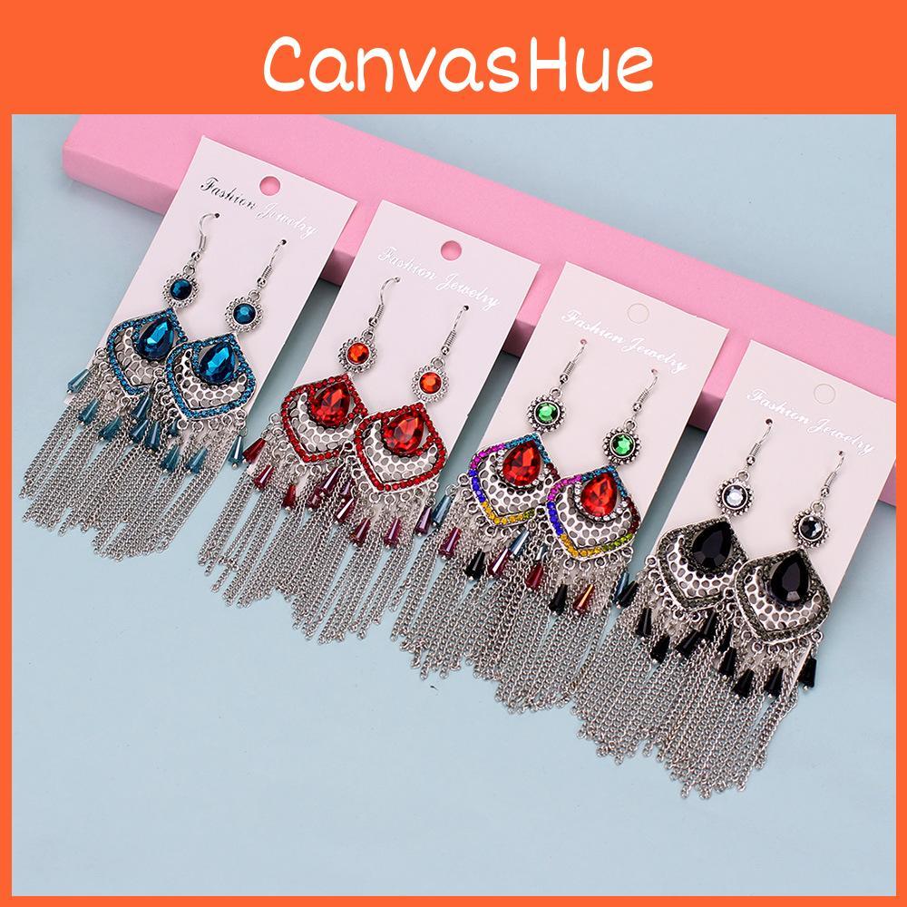 Vintage Geometric Alloy Drop Earrings With Embellished Gems For Womens Casual Wear