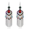 These vintage-style geometric earrings feature a dangle design crafted from durable alloy with hollow floral patterns and embedded artificial gemstones. they showcase a retro aesthetic with a silver-toned finish and colorful accents. Suitable for weddings, travel souvenirs, or employee gifts, these earrings support daily wear and special occasions. Clean with a soft cloth to maintain their shine.