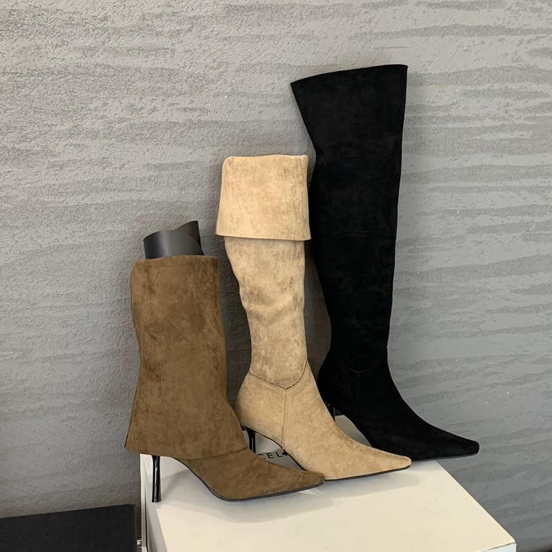 Designer Autumn Winter Vintage Thin Heels Women Knee High Boots Fashion Sexy Pointed Toe Stripper Party Shoes Zapatos De Mujes