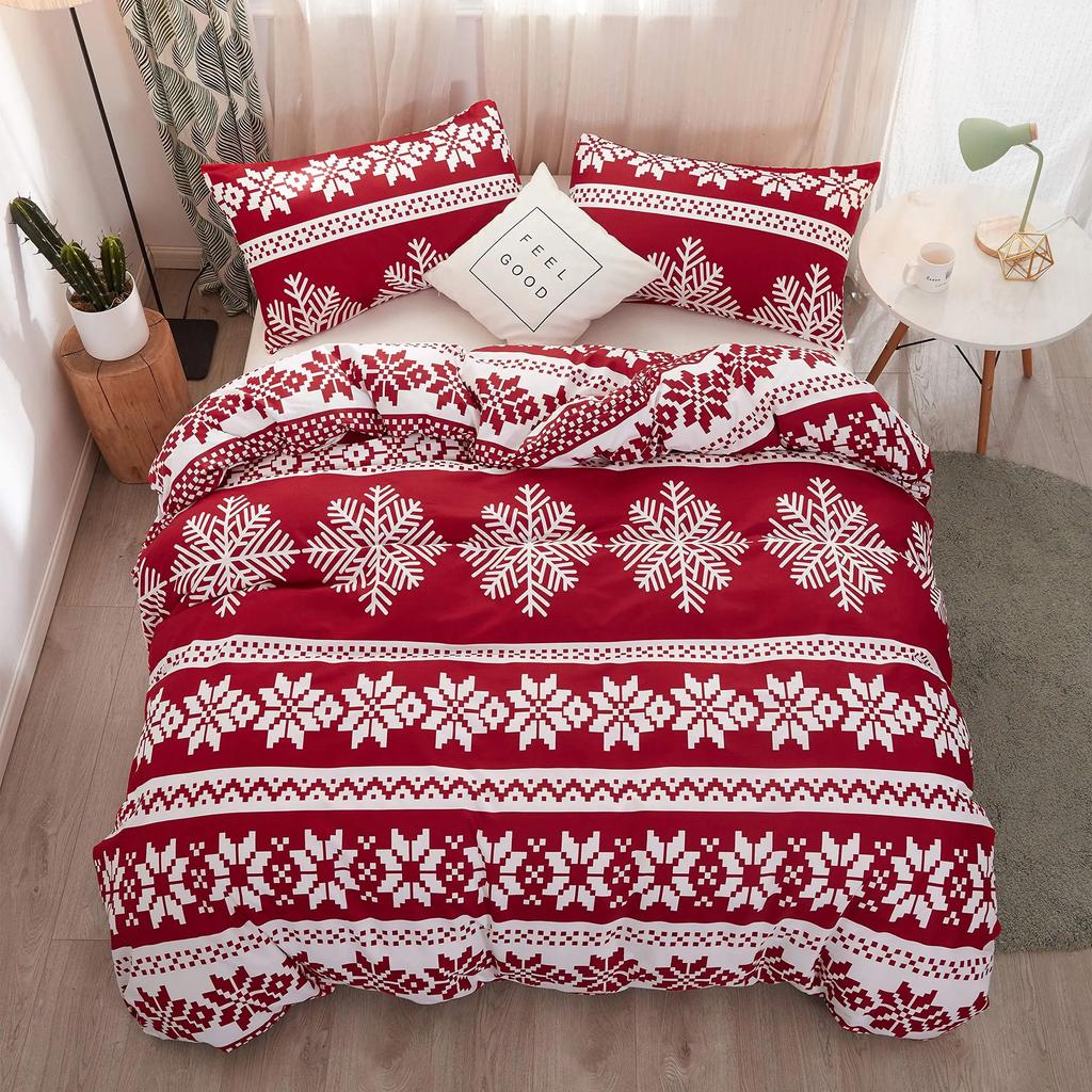 Comforter Christmas Queen Size Bedding Set Snowflake Red Bedding Set Luxury Holiday Merry Christmas For Bedroom Decoration
