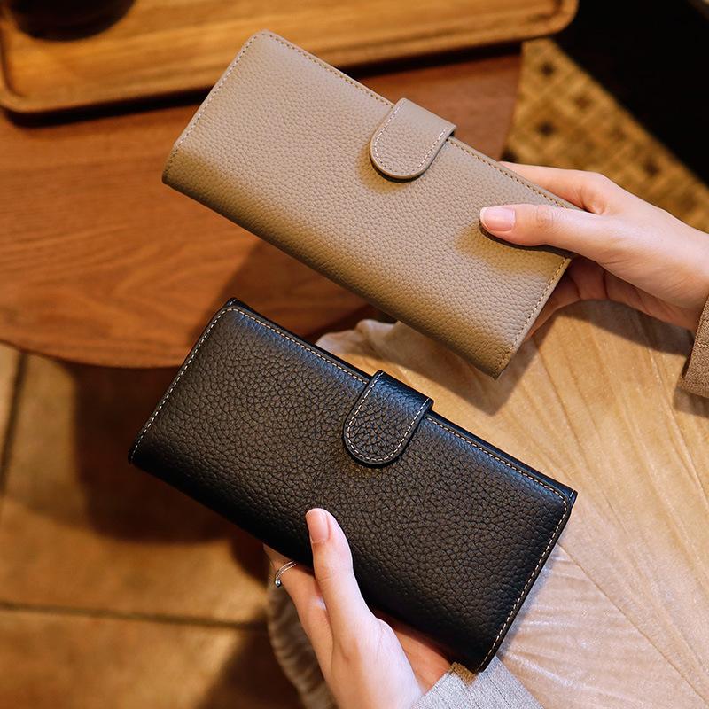 2026 New Women's Top-Grain Leather Lg Wallet & Phe Clutch | Solid Color Multi-Card Mini Handbag | Slim Everyday Carry