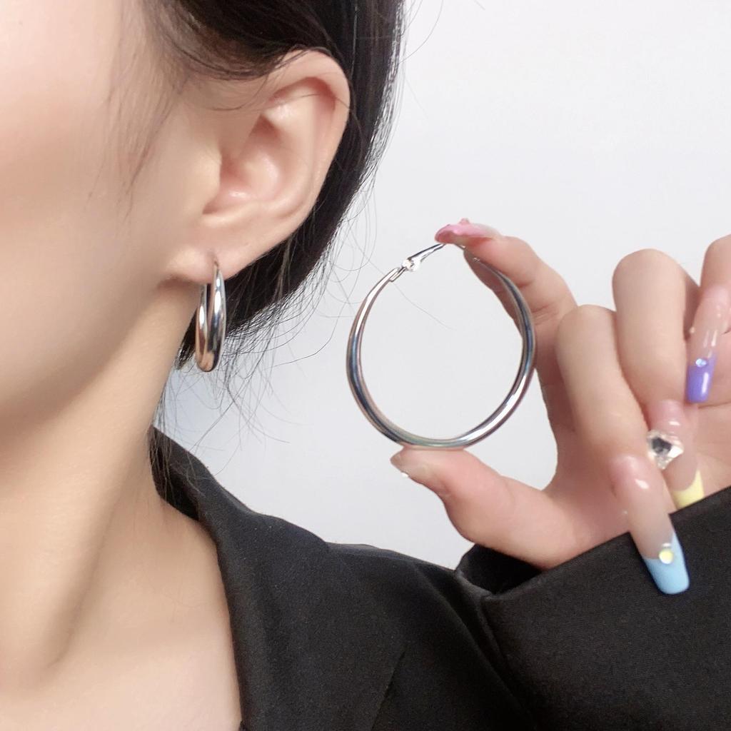 Harajuku Style Large Hoop Earrings with Korean Metal Spray and S925 Silver Needle