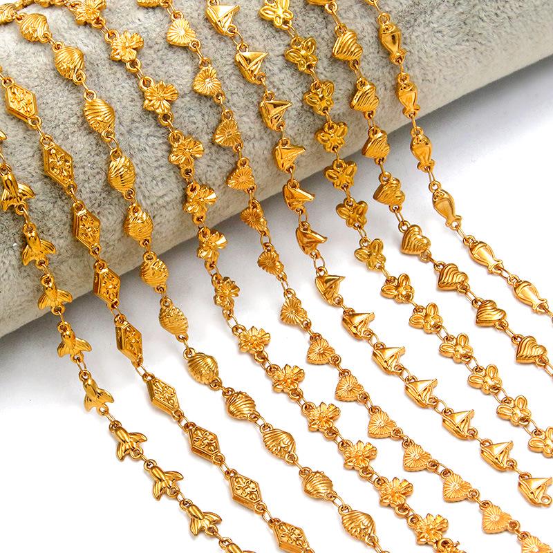 18K Gold Plated Stainless Steel Heart, Butterfly, Four-Leaf Clover, Shell Chain Bracelet/Necklace, 50cm.