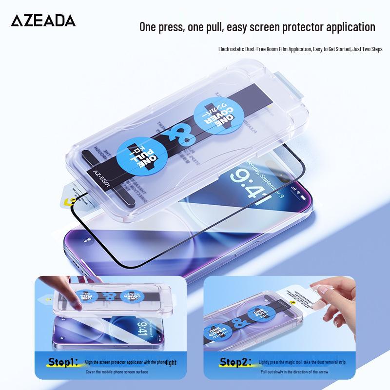 Azeada HD Tempered Glass Anti-Peep Screen Protector for iPhone 15/iPhone 16 Pro - Dust-Free, Instant Application