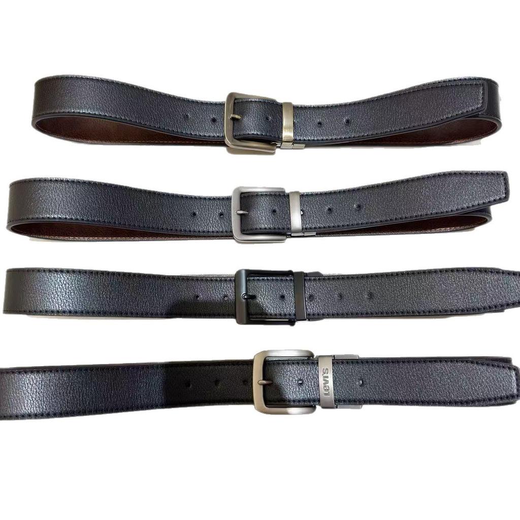 Cowhide Bark Texture Double-Sided Leather Belt with Rotating Pin Buckle - Simple Korean Style