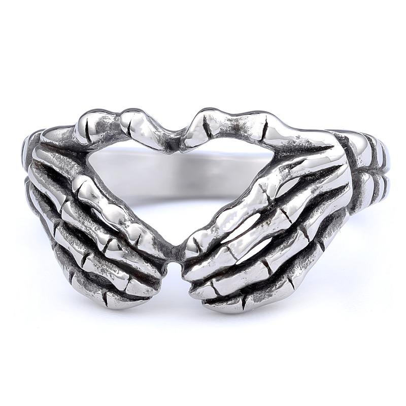 Personalized retro heart skull hand ring - stainless steel women's biker ring