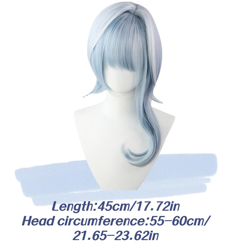The wig features a beautiful blue and white gradient color that adds a touch of uniqueness to your overall look. The irregular bangs and curls create a playful and stylish appearance, allowing you to stand out from the crowd at any cosplay event or party.