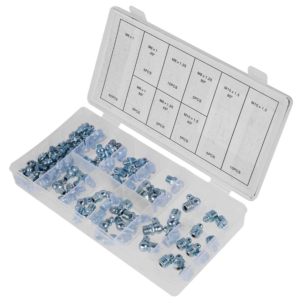 110 Pcs Grease Nipple Fittings Assortment Kit Straight 45/90° Angled Galvanized Metal Grease Nipple Set for Motorcycle Truck