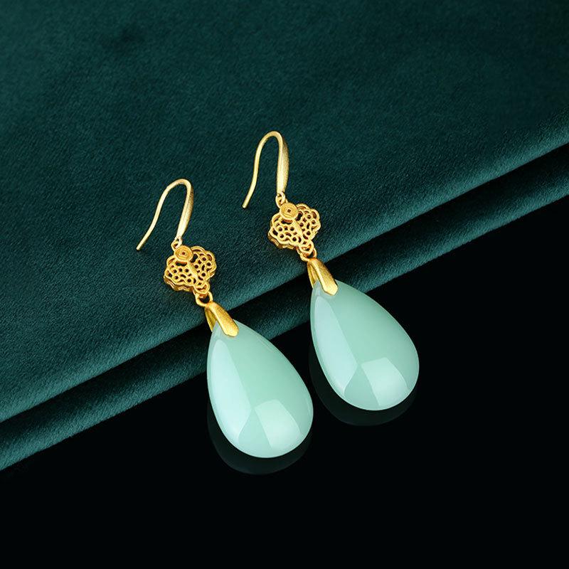 925 Sterling Silver Ruyi Water Drop Jade Earrings - Versatile Hollow Inlaid Design for Women