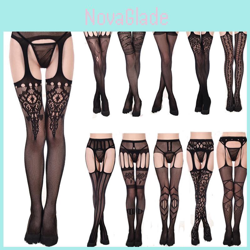 Ultra Stretchy Women's Nylon Fishnet Stockings With Sensual Open-crotch Design And Non-slip Features For Alluring Intimate Moments