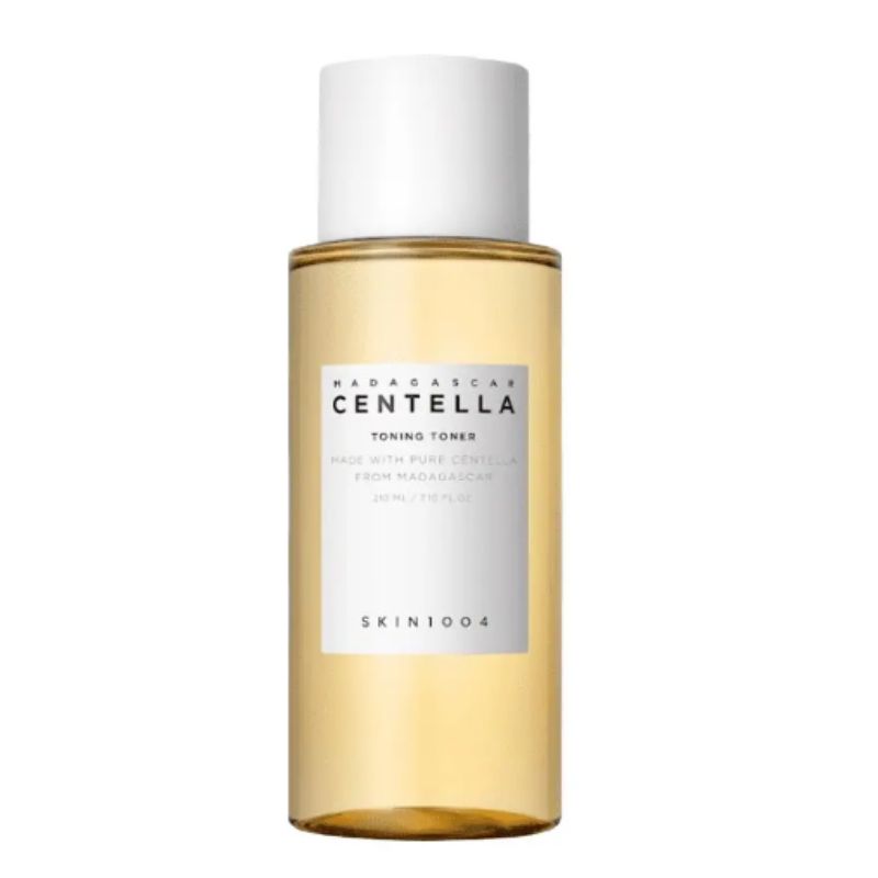 SKIN1004 Madagascar Centella Toning Toner is a high-performance, hypoallergenic exfoliating toner designed to achieve a smooth, radiant "Glass Skin" texture without causing irritation. This "Daily Glow" formula features 84% Madagascar Centella Asiatica Extract, providing intensive soothing and moisture replenishment from the very first step of your post-cleansing routine. Unlike harsh physical scrubs, it utilizes PHA (Gluconolactone)—a large-molecule chemical exfoliant—to gently dissolve dead skin cells and clear clogged pores, making it perfectly safe for even the most sensitive or acne-prone skin. Infused with Niacinamide and Adenosine, it works to brighten dull skin tones and improve the appearance of fine lines. It is the ultimate derm-tested solution for maintaining a balanced, clear, and hydrated base that allows subsequent skincare products to absorb 1.5 times more effectively.