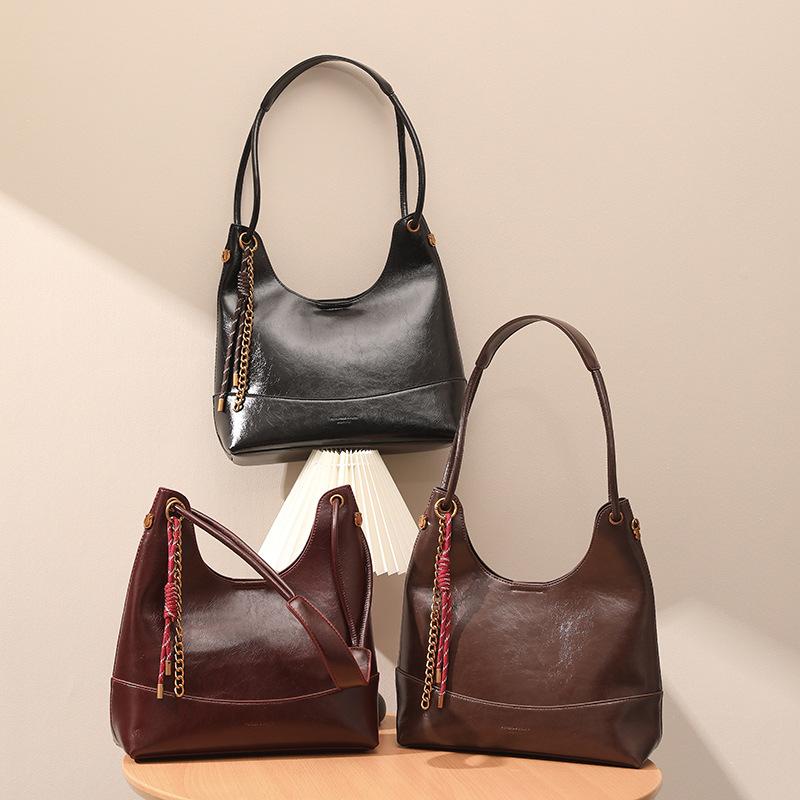 One shoulder crossbody bucket bag, armpit bag, Korean version retro simple women's tote bag, fashionable commuter, large capacity, versatile