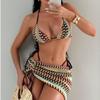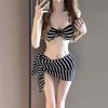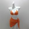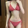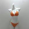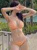 Orange striped neck strap bikini swimsuit women's three-piece set, Korean ins hot spring sexy babes vacation style