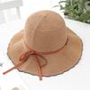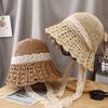 Hat women's summer cut-out breathable sunscreen bucket hat foldable knitted sun basin hat with large brim