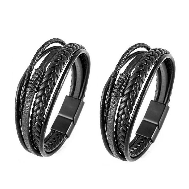 Leather Bracelet - Simple and Retro Decorative Pendant Bracelet, Multi-layer Woven Chain, Men's Style, Alloy, Magnetic Attachment