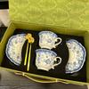 Squisito Set di Tazza da Caffè e Sottotazza in Ceramica Blu e Bianca Retrò