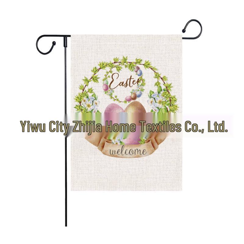 Easter Farmhouse Double-Sided Outdoor Linen Flag