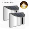 2Pcs Stainless Steel Solar Wall Lights Courtyard Waterproof Outdoor Lighting Emergency Patio Step For Garden Fence and Street