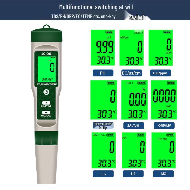 10-in-1 Water Quality Tester: PH, TDS, EC, Salinity, SG, ORP, Hydrogen, Resistivity, Temp, Nutrient Solution