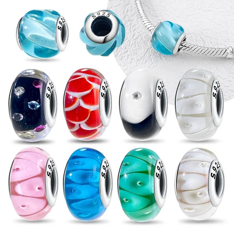 New Arrivals copper Colorful Murano Geometric Line Bead Charms Compatible With Exquisite Authentic Bracelets for Women Jewellery Gifts