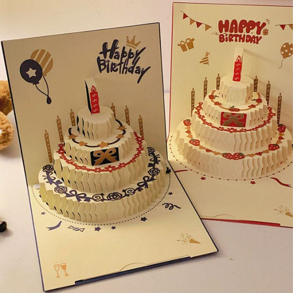 Folding 3D Happy Birthday Card with Envelope Postcard Birthday Cake Card Paper Surprise Pop-Up Greeting Card Kids Gift