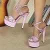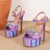 Eilyken Elegant Purple Bow Decoration 16cm Sexy Slim Ultra-high Heels Fashion Open Toe Sandals Women's Night Club Dance Shoes