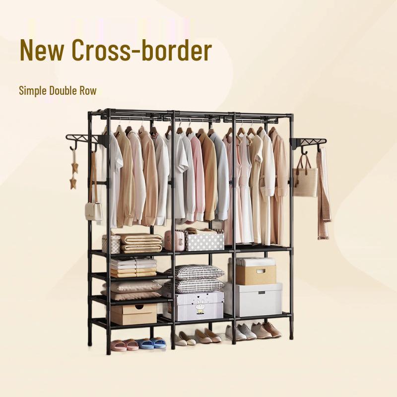 Multifunctional Three-Row Floor Standing Storage Rack for Clothes and Hats