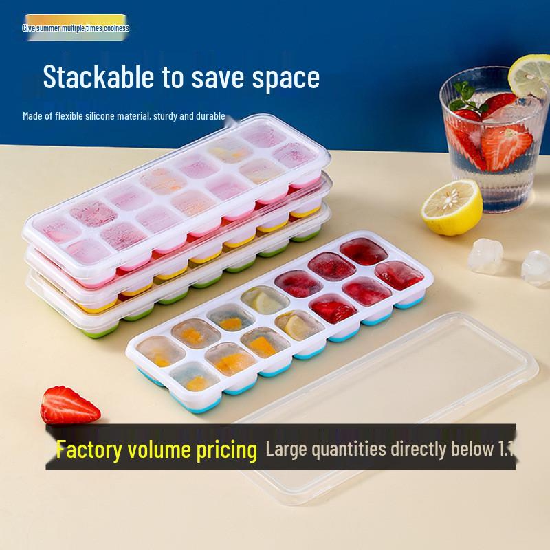 14-Grid Silicone Ice Cube Tray with Lid – Soft Bottom DIY Ice Cream Mold