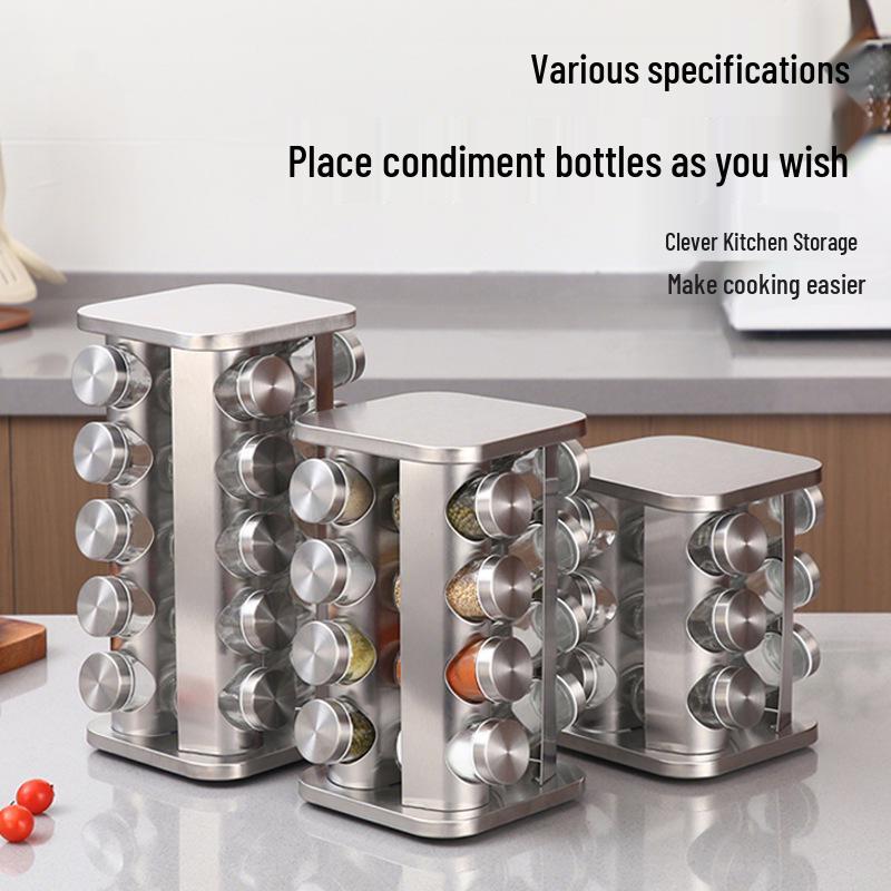 Rotatable Stainless Steel Kitchen Spice Rack - Multi-functional, Portable Seasoning Organizer