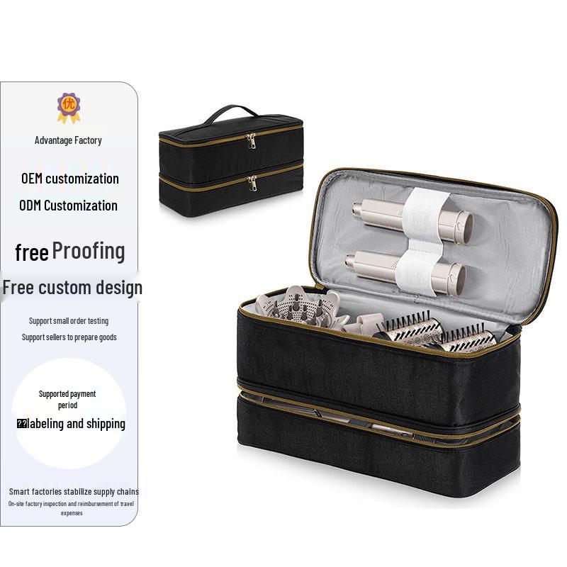 PU Double Layer Hair Dryer & Curling Iron Storage Bag - Large Capacity, Portable, Multi-functional Makeup Handbag with a High-end Feel.