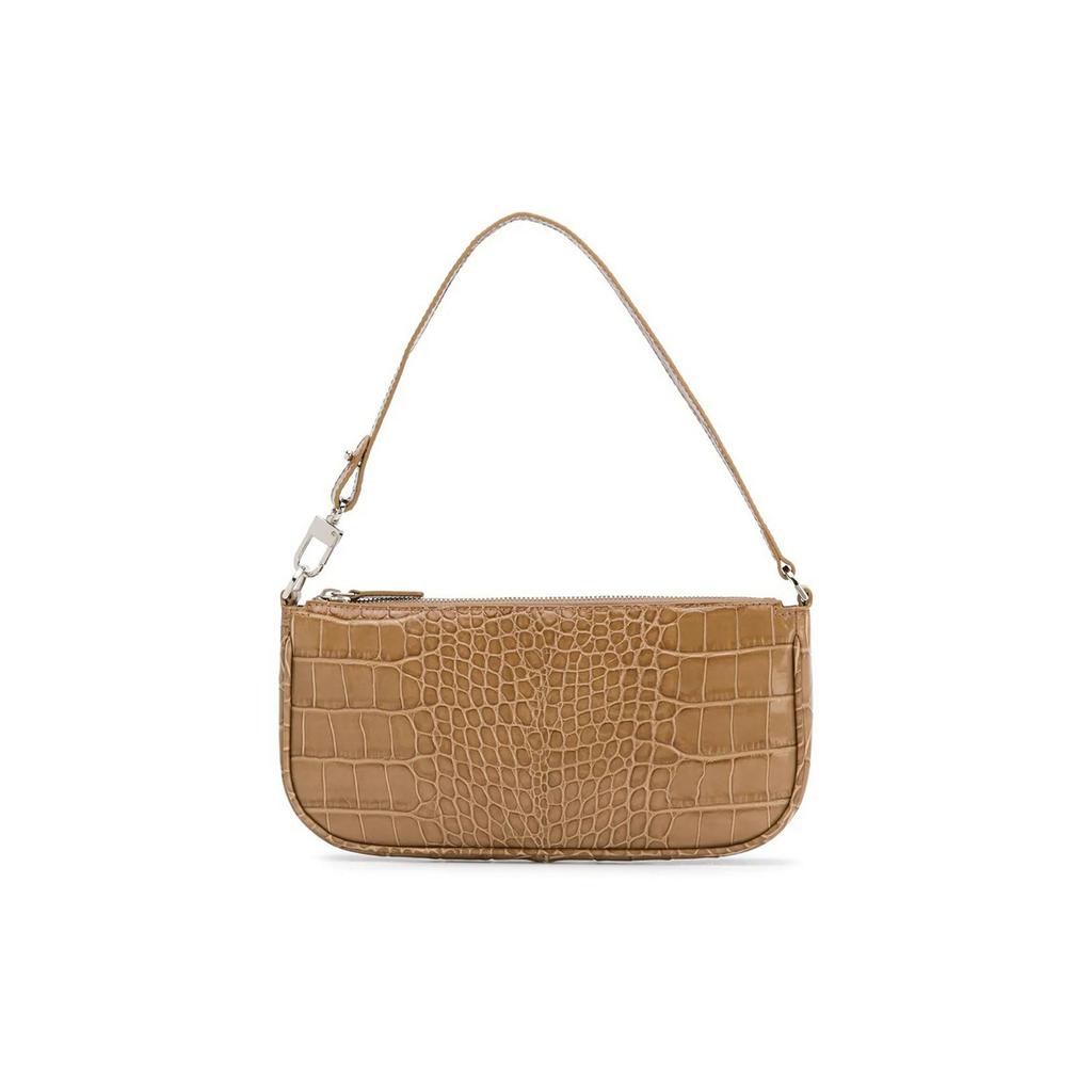 By Far Rachel Vintage Crocodile Pattern Zipper Closure Sheepskin Underarm Shoulder Bag Women bags Brown Yellow 20CRRCLSTPDMED