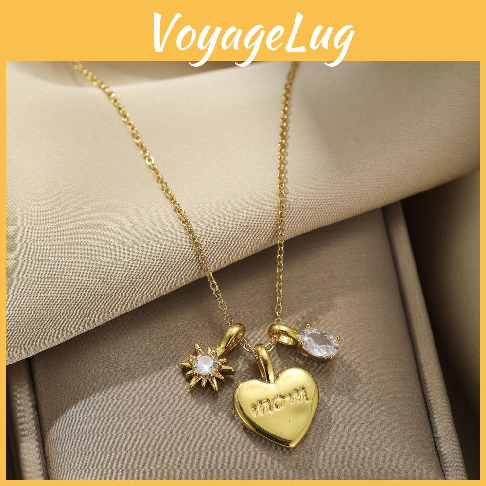 Elegant Stainless Steel Heart Necklace Pendant For Moms Featuring 18k Plating Ideal For Valentine's Day Gifts