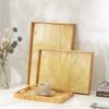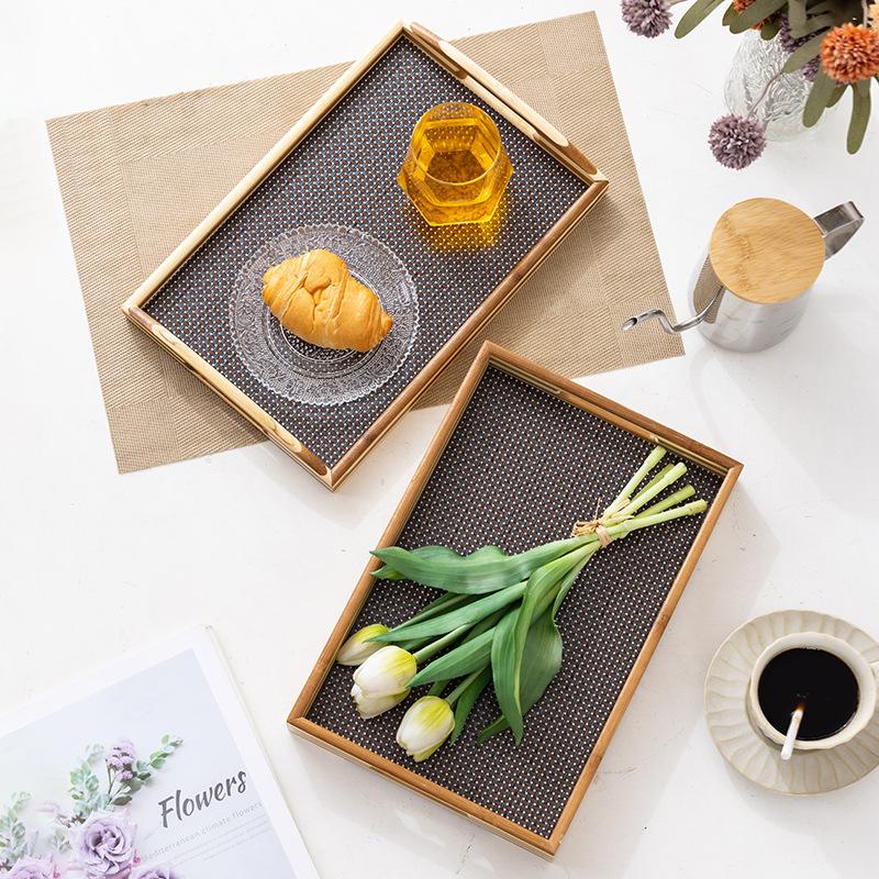 Retro Bamboo Imitation Rattan Tea Tray Home Cafe Bakery Storage Tray Simple Rectangular Tea Tray