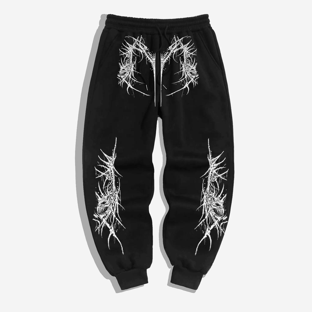 Hip-Hop High Street Dark Style-Thorn Totem Street Casual Sweatpants, Campus Fashion Outdoor Casual Jogging Pants