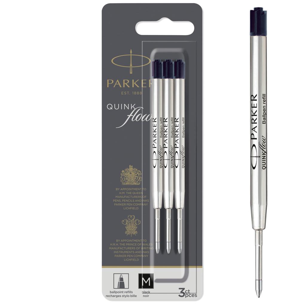 Parker Quinkflow Ballpoint Pen Ink Medium Refill, Nib, Black, 3-Pack