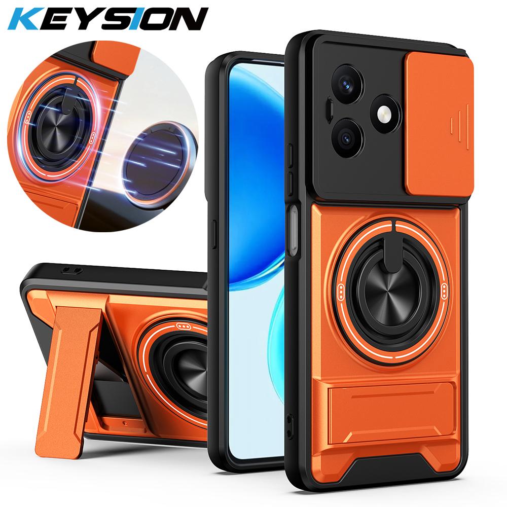 KEYSION Magnetic Phone Case for HONOR X8d Slide Camera Protection Upright Kickstand 360°Ring Shockproof Back Cover for Honor X8d