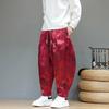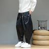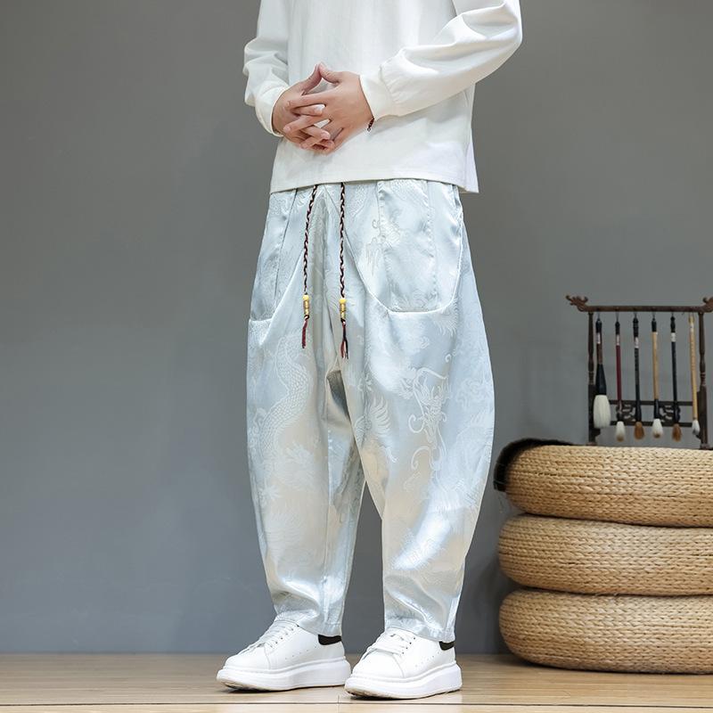 Men's Blue Dragon Jacquard Harem Pants Satin Drawstring Wide Leg Trousers