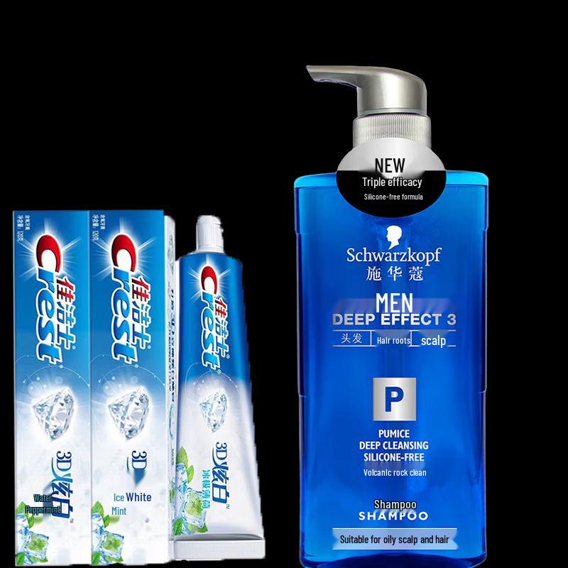 Crest 3D White Toothpaste & Schwarzkopf Men's Shampoo Bundle