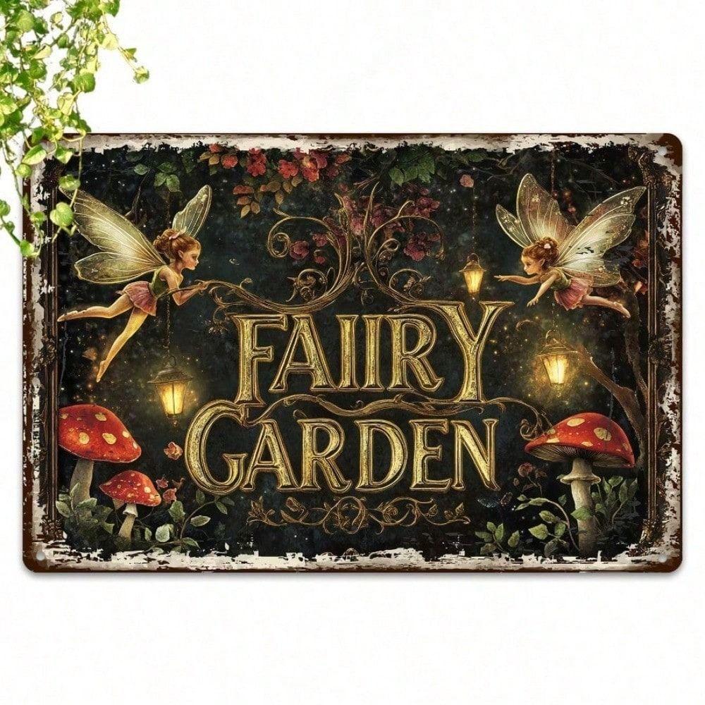 Vintage Metal Tin Sign Flower Fairy Garden Wall Decor Housewarming Gift