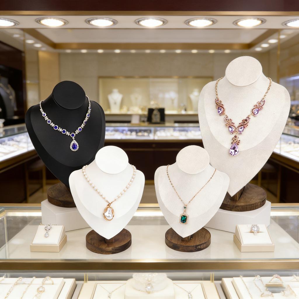 Walnut Color PU/Velvet Portrait Necklace Display Jewelry Display Stand Jewelry Mannequin Bust Necklace Pendant Window Display