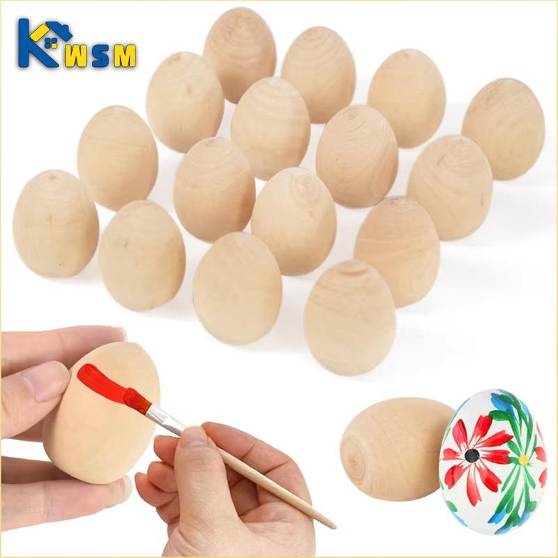 Wooden Easter Eggs DIY Painting Realistic Imitation Farmhouse Decor Creative Doodle Art for Kids Role Play Wooden Bead Ornaments