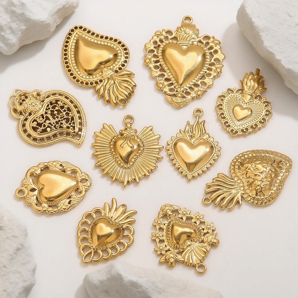Yori 5PCS Stainless Steel Fashion Sun Love Heart Pendant Bracelet Necklace DIY Accessories Waterproof Wholesale