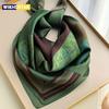 26.77" Green Print Square Scarf Simulated Silk Thin Satin Neck Scarf Elegant Style Professional Decorative Small Scarf For Lady