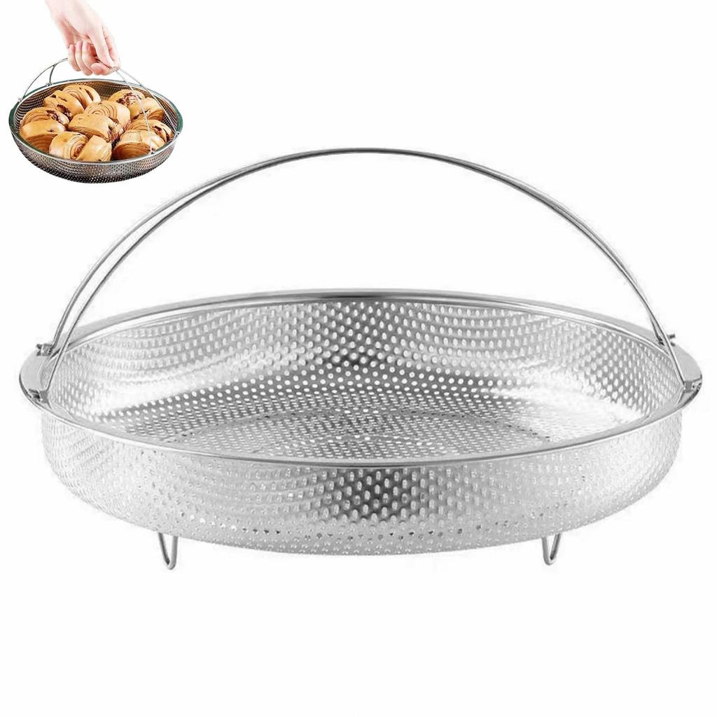 Material: 304 Stainless Steel Size: 22.5cm: 22.5 x 22.5 x 4cm / 25.5cm: 24.5 x 25.5 x 4cm Fits Various Kitchen Utensils: Designed to fit most 11-inch to 12-inch pots and pans, this steamer is versatile and can be used on stovetops, deep pots, and sauté pans. Flexible Kitchen Tool: More than just a steaming basket rack, this multi-purpose steaming basket is perfect for draining, washing, and steaming vegetables, meat, and seafood. It also functions as a fruit basket, rice washer, and colander. A versatile and easy-to-clean perfect kitchen gadget. Practical Design: With two comfortable handles, you can easily lift food from the pan or stovetop after cooking. In addition, the raised legs protect food from boiling water and keep the basket stable without spills or spills. Wide range of uses: Whether you want to steam vegetables, dumplings, fish, seafood, eggs, or meat, our steamer basket can be used for a variety of purposes. It's perfect for making various dishes such as bao buns and dim sum, and is ideal for kitchen use.