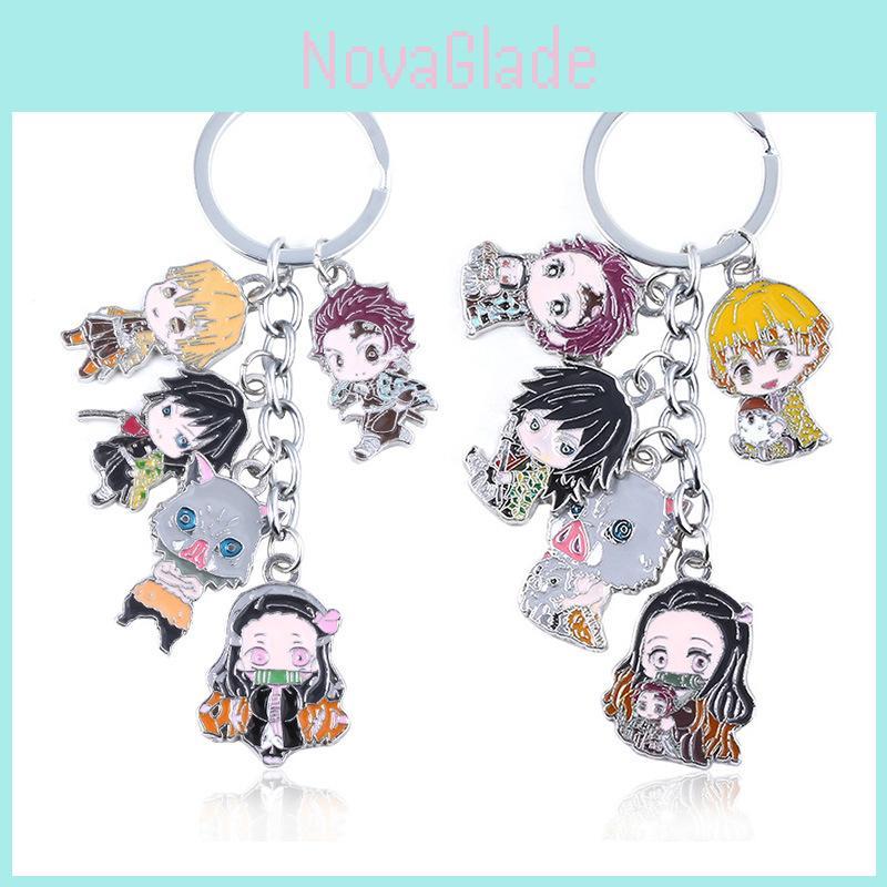 This colorful keychain features characters from the Demon Slayer anime, crafted from durable zinc alloy. it offers a lightweight yet sturdy accessory suitable for everyday use. Ideal for fans and collectors, it enhances backpacks, keys, or gift sets for various celebrations. Wipe clean with a dry cloth for maintenance.