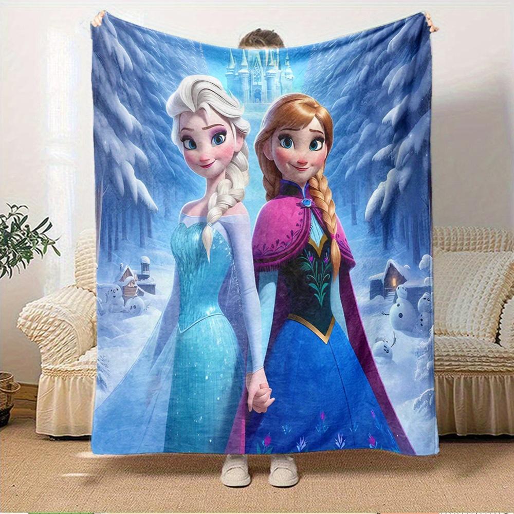 1pc Flannel Frozen Elsa & Anna Snowflake Print Throw Blanket for Bed Sofa Decoration Gift Winter Wonderland Theme Home