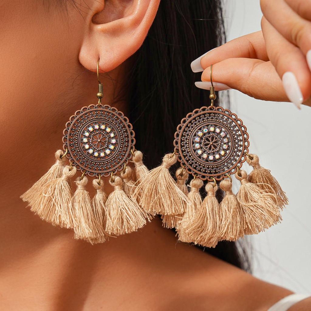 Round Short Tassel Ear Hooks, High-end Earrings, Bohemian Earrings